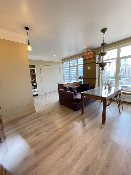 Приморський; Сдам от хозяина 1-комн КАМАНИНА / ЖК МОНБЛАН; Долгосрочная аренда 1-ком кв с дизайнерским ремонтом в новом ЖК на улице Команина. Первая сдача! Есть все для проживания, посуда, техника на кухне ! Благоустроенная закрытая территория с зеленой зоной и детской площадкой .