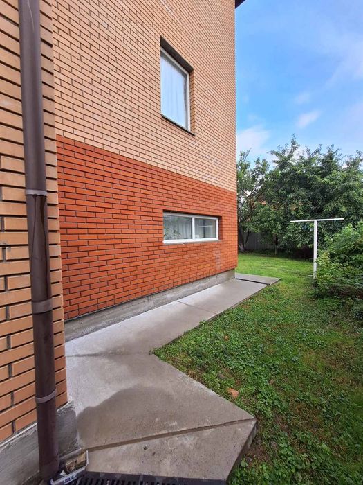 Стіни - цегла облицювальна двокольорова, заводський піноблок. Товщина зовнішніх стін 0.5м