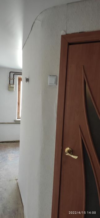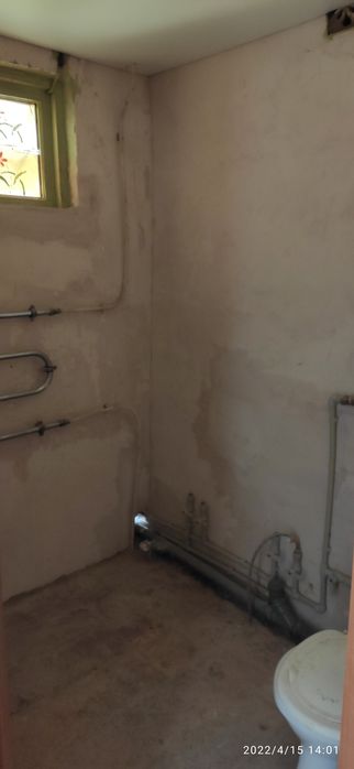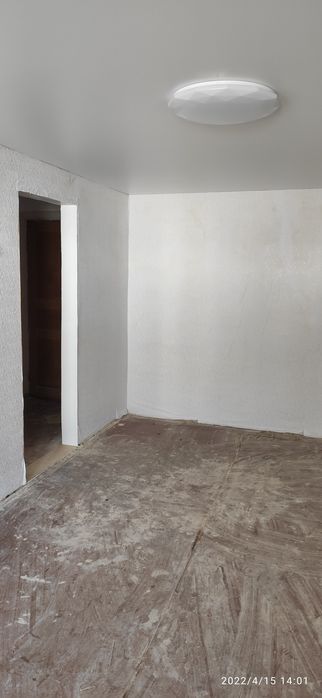 Стан під чистову обробку. Стіни в шпалерах, стеля натяжна в кімнаті, кухні, коридорі. Водопровід і каналізація в пластику. Вікна дерев'яні, зараз без скла, зашиті osb.