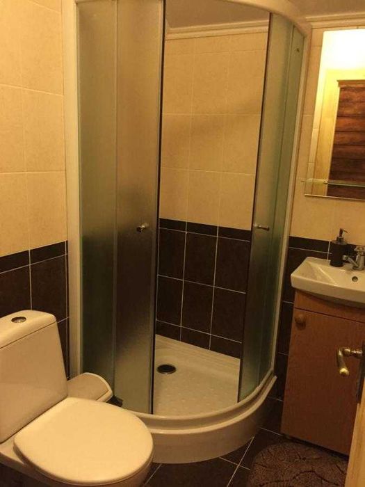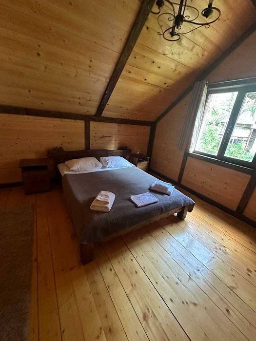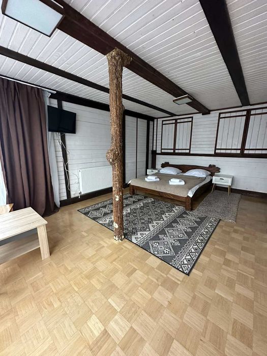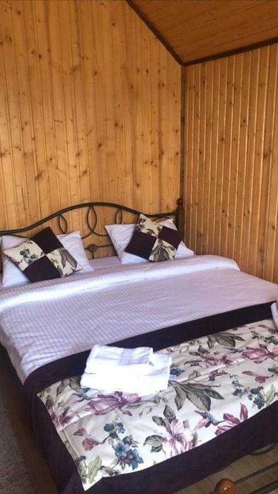 В шале чотири повноцінних кімнати з санвузлами та душовими, також вітальня з розкладним диваном, в цілому поміщається від 8 до 10 людей.