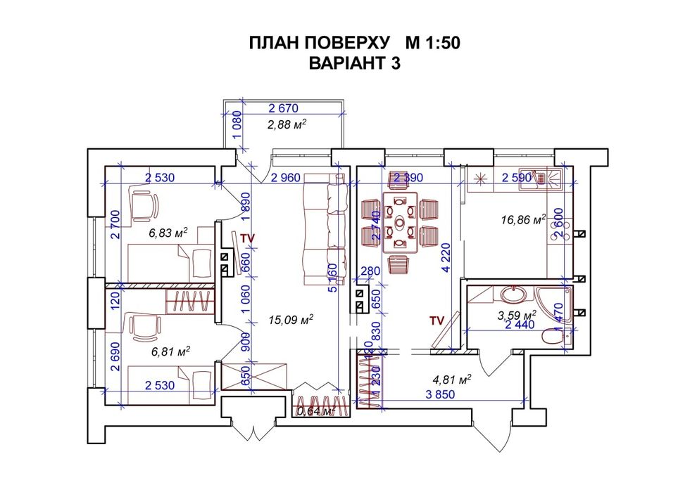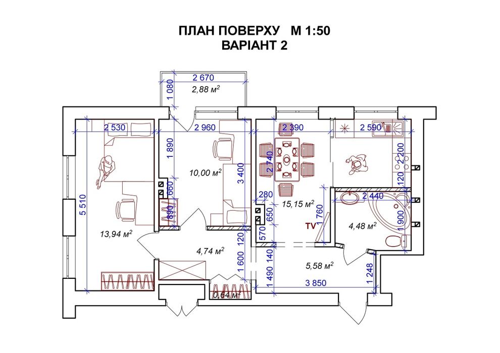 55 м2