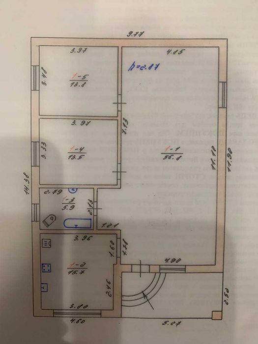 * Висота стелі: 3,3 м