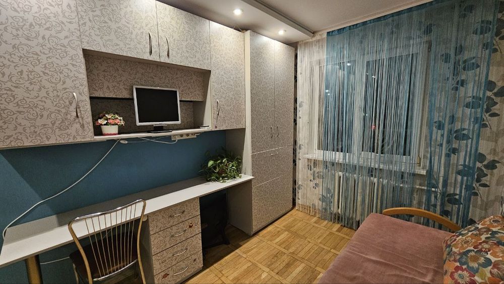 Дві окремі кімнати, в кожній двоспальний диван, місткі шафи для зберігання речей та зручне місце для роботи з дому або навчання. Простора кухня, комора, ванна і туалет окремо.