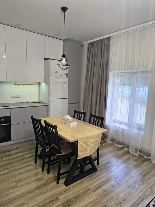 Квартира має велику кухню -гостинну ; спальна кімната, гардеробна кімната та санвузол. На території є мангальна зона, дитячий майданчик. Площа квартири 47 кВ м. Можлива сім'я із дітьми або із тваринами. Оплата + комунальні по лічильнику . Світло по тарифу 4,32. Квартира утеплена. Наразі проживають люди ! БУДЕ ВІЛЬНА з 1 лютого!!!