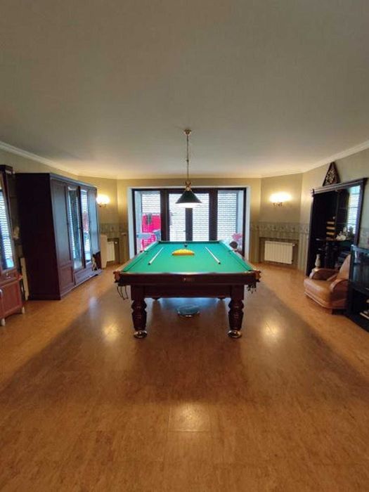 Цокольный этаж: бильярдная, баня с бассейном, топочная, винный погреб, терраса с выходом во двор.