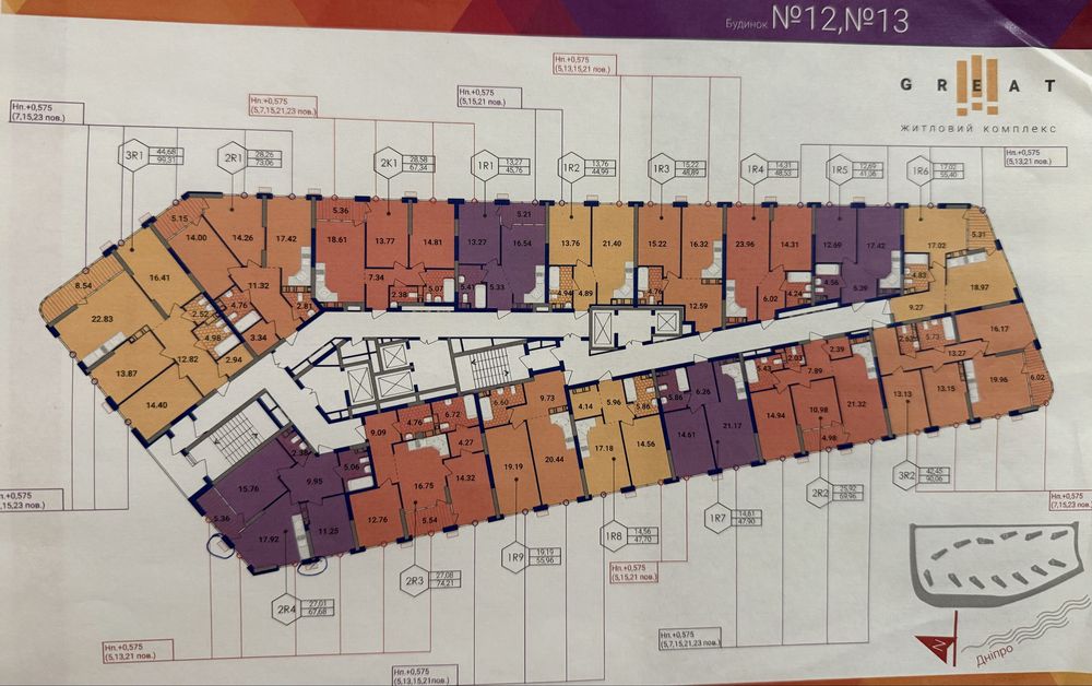 Дніпровський; Двокімнатна квартира ЖК Greate; Двокімнатна квартира на 20 поверсі. Панорамні вікна у двір і на Дніпро.