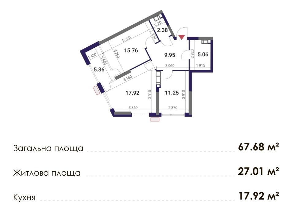 Загальна площа 67,68 м2.