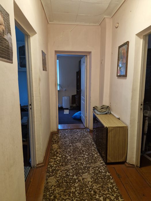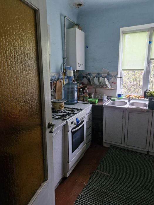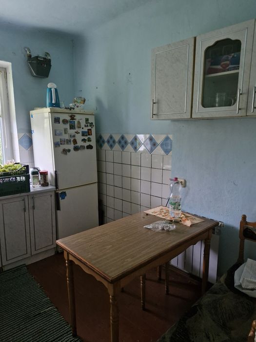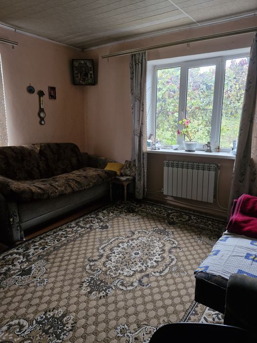 Одна з кімнат потребує ремонту(стіни вирівняні по рівню). Одна сторона будинку утеплена пінопластом. Є кухня, ванна з туалетом,підвал в будинку +1 на вулиці,горище. В одній з кімнат є пічка яка обігріває кімнату додатково. По всьому будинку індивільне опалення(газовий котел). Є 2 криниці(вода заведена в будинок)  ,вигрібна яма,світло.