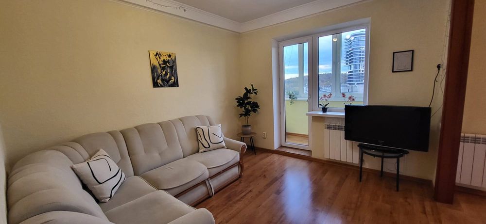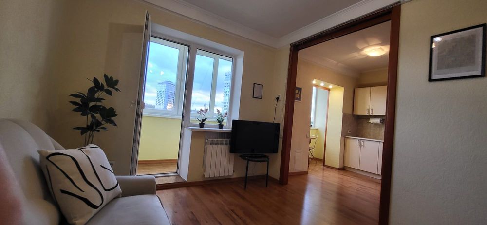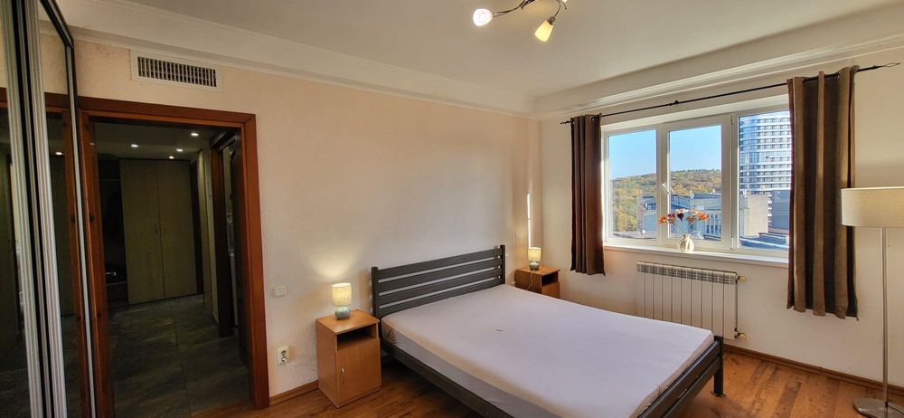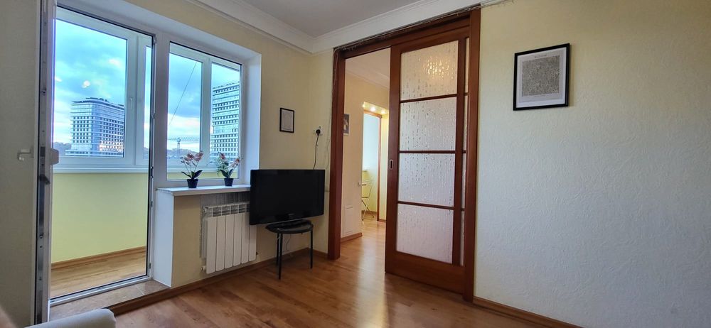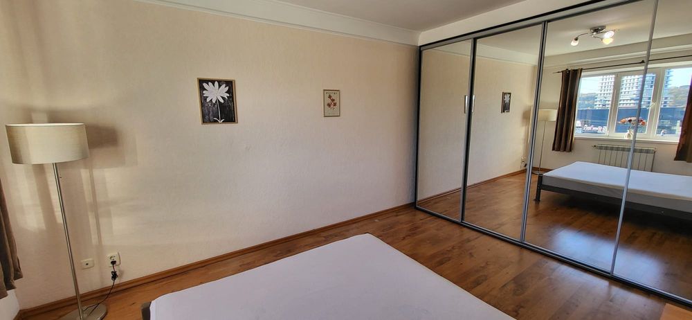 Голосіївський; Здам 2х кімнатну квартиру біля метро Голосіївська; Гарна квартира з ремонтом по вулиці Васильківська 2А, навпроти Голосіївського парку з озером та за 2 хвилини ходьби від метро Голосіївська. У квартирі 2 кімнати та кухня з розсувними дверима між вітальнею та кухнею, 2 окремі балкони, кондиціонер по всій квартирі. Широкий коридор з безліччю шаф. Усі вікна мають подвійні склопакети. Зверху технічний поверх, на якому 2 роки тому була зроблена додаткова ізоляція. У квартирі багато світла та сонця з ранку до полудня.