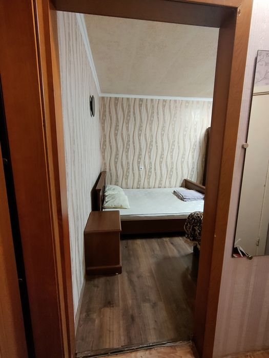 Однокімнатна квартира на масиві Леваневського в затишному та тихому будинку, 5 поверх, не кутова, по вул. Митрофанова в районі 9 тех. училища. Наявно достатньо пакувальних місць біля будинку, зручний під'їзд. Поруч зручна транспортна розв'язка, МакДональдз, Атб і тд, навколо в дворах купа дитячих садочків, школа. Квартира укомплектована всим необхідним - бойлер, пральна машина, газова плита, електро чайник, холодильник, всі необхідні меблі з безліччю місця для речей, спальні місця, кладовка. Новий утеплений балкон, пластикові склопакети, новий радіатор (встановили значно більший, ніж потрібно згідно площі, тому взимку відчутно тепліше, ніж в аналогічних квартирах, крім того подача тепла починається з вас до низу). Також новий пластиковий балкон суттєво підвищує тепло та шумо ізоляцію. Для людей без тварин.