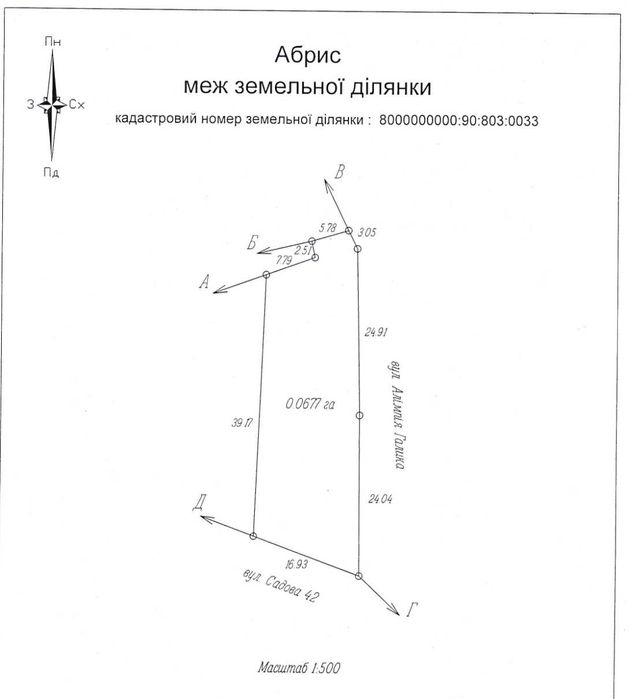 Кутова Ділянка 0.0681 га з широким фасадом, за адресою вулиця Садова 42.