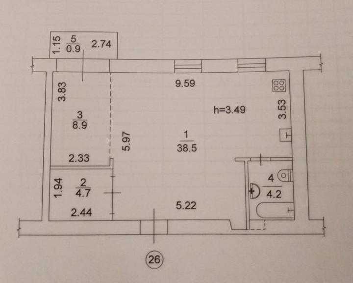Стеля — 3,5 м, поверх 4 із 4, будинок без ліфта.