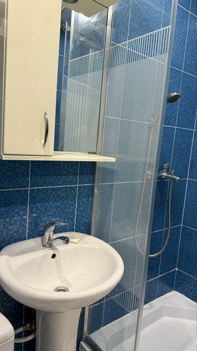 Квартира після ремонту, меблі після хімчистки. Укомплектована всією необхідною побутовою технікою: плитою, мікрохвильовкою, холодильником, бойлером, пральною машиною, телевізором, кондиціонером, праскою, чайником та пилесосом. Встановлено лічильники води, електролічильник. Квартира тепла. Супермаркет у сусідньому будинку. Хороша транспортна розв'язка, поряд зупинки маршруток, McDonald’s, АТБ. До центру машиною 5-7хв.