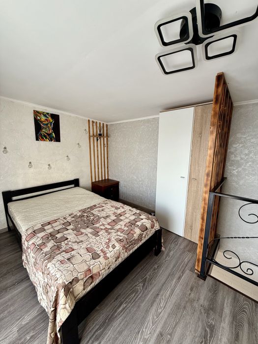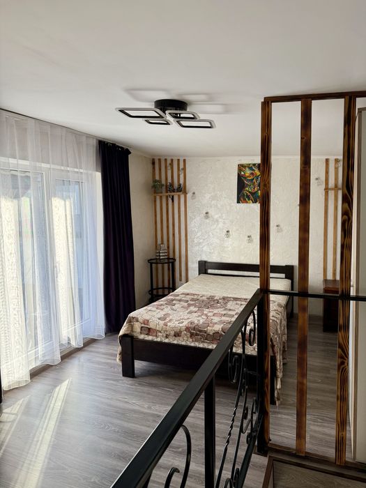 Два этажа. На первом этаже кухня-студия. Второй этаж две комнаты, одна проходная. Дом на электроотоплении+газовая плита. Есть паркоместо, свой двор, отдельный вход. Без маленьких детей и собак. С котиками можно!