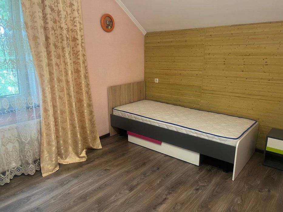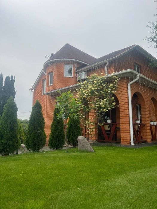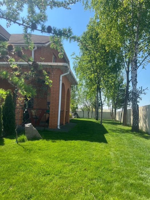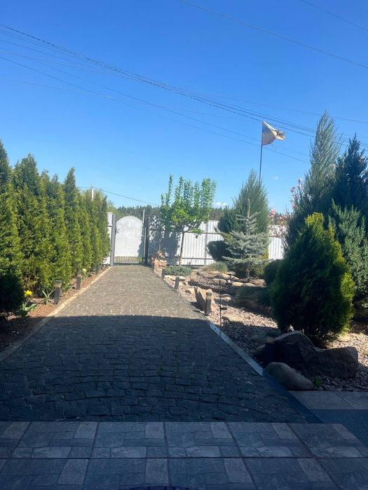 Будинок та ділянка потопають у зелені фруктових дерев, берез, туй, розаріїв, зелених насаджень та квітів, що створюють прекрасну атмосферу спокою та відпочинку.
