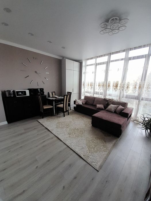 Кухня - гостиная 25 м ,плюс 1 спальня -15 . Санузел совмещен.