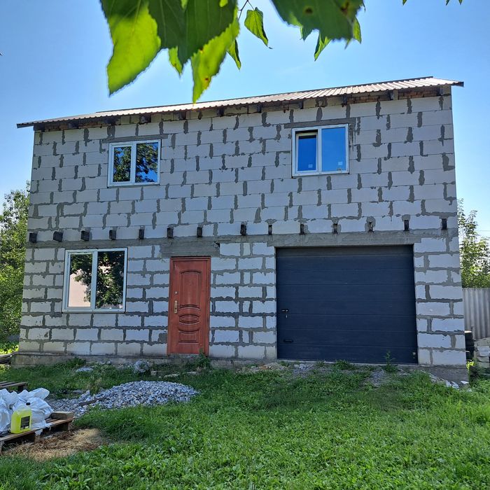 Будинок двоповерховий без внутрішніх робіт, площа 100 м кв. Вікна преміум якості, профіль REHAU з антиблик ефект. Ворота в гараж якісної німецької фірми Gant .