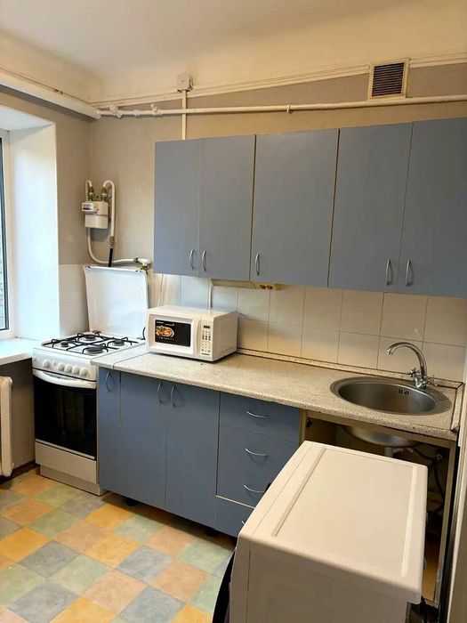 Квартира укомплектована встроенной кухней, холодильником, стиральной машиной автомат, бойлером, микроволновкой, газовой кухонной плитой с духовкой, двуспальной кроватью, диваном, шкафом.