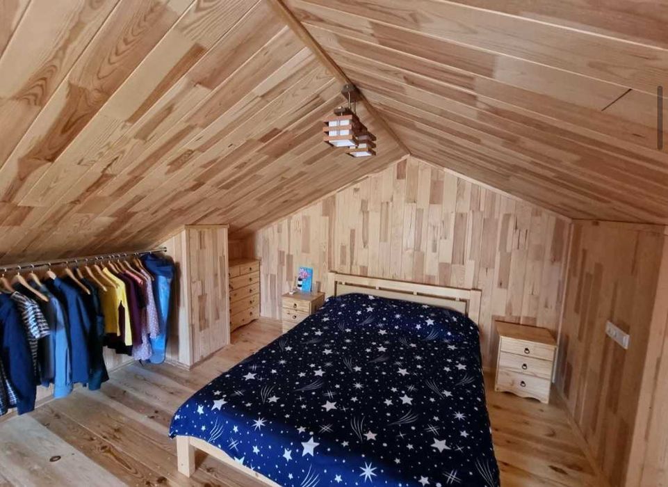 Поряд із будинком сосновий ліс.