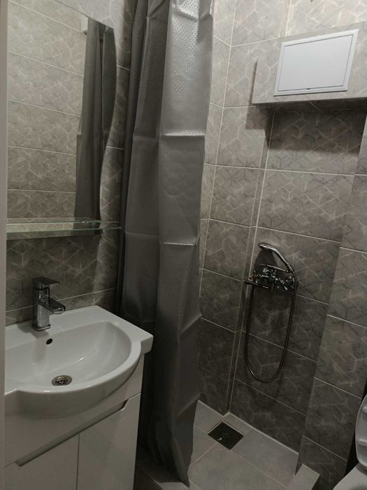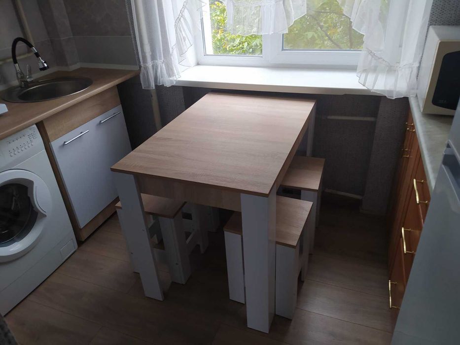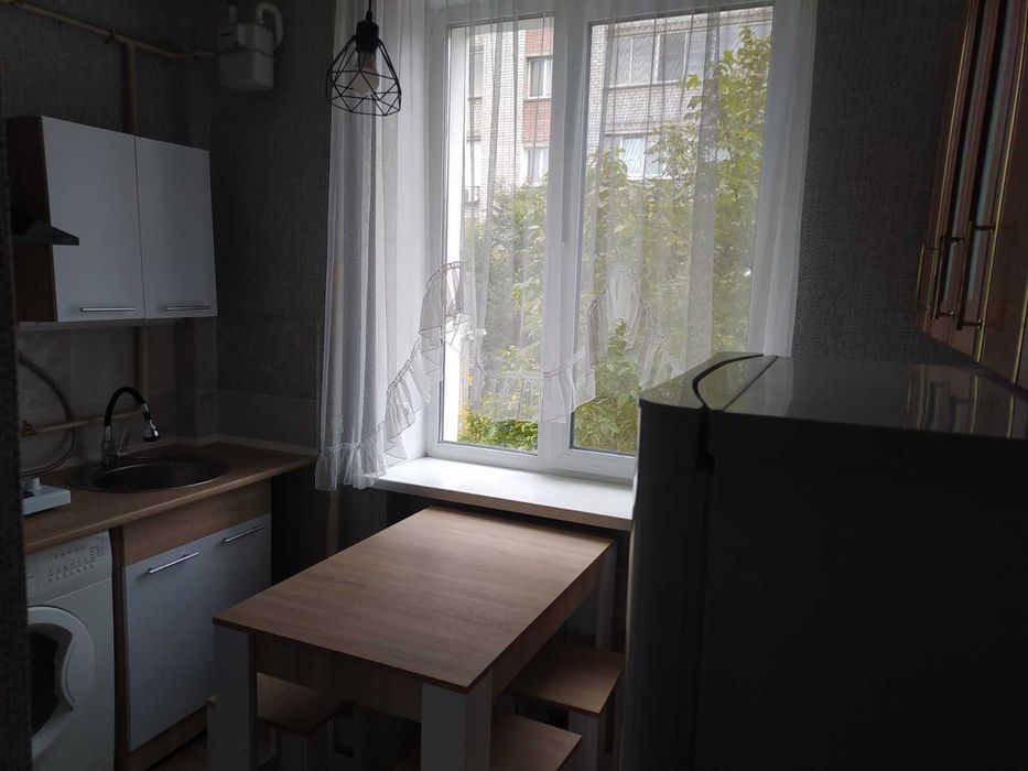 Укомплектована побутовою технікою: холодильник, пральна машина, бойлер, мікрохвильовка, витяжка.