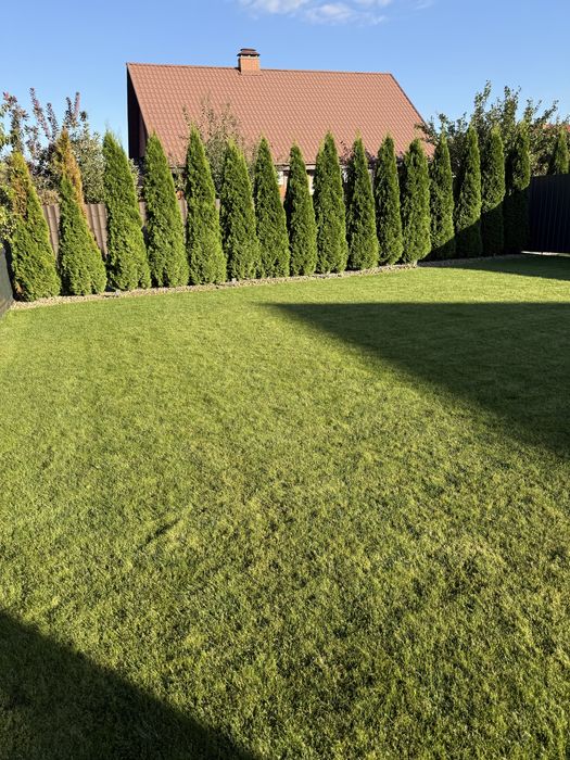 -6 соток. Газон з автополивом та фруктові дерева;