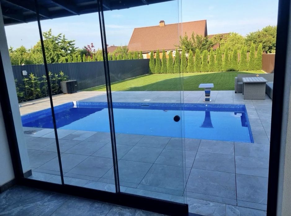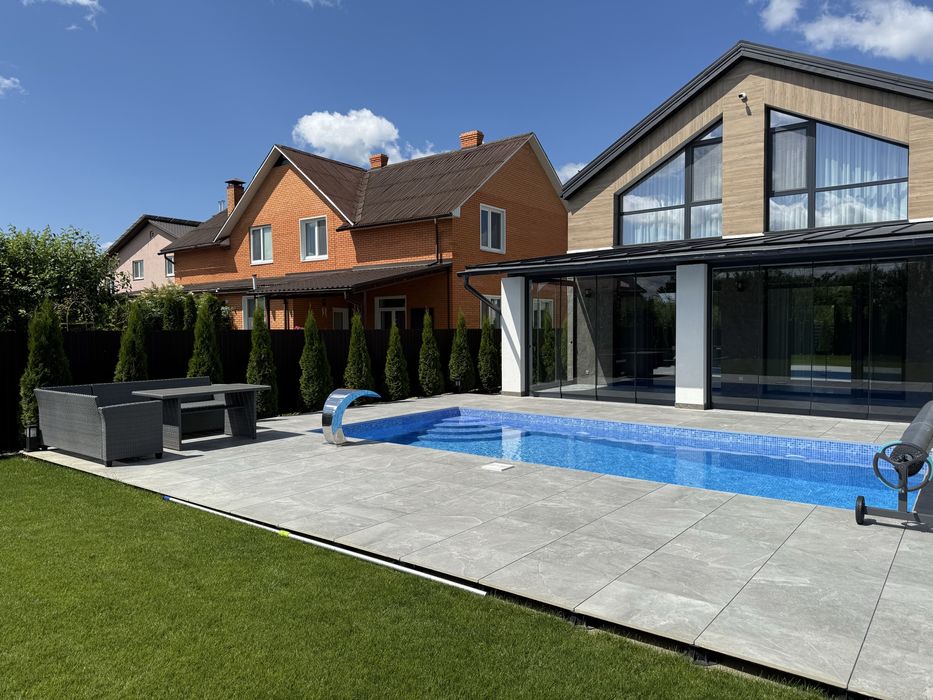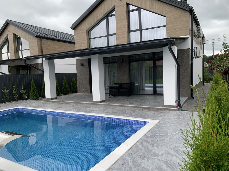 Новий будинок з басейном. Без податків. Власник; Новий будинок з ремонтом, розташований в с. Глеваха, що оточене лісом та має озеро з пляжем.