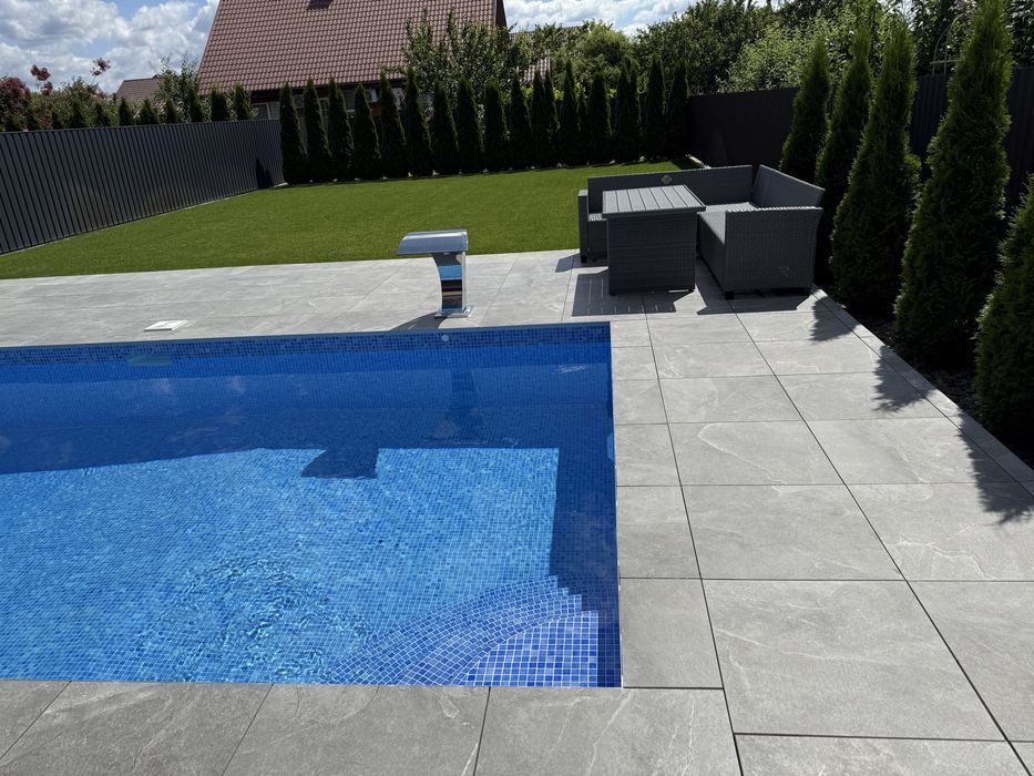 Тераса з виходом на басейн (бетон) на задній частині подвір’я 3,5х7. Підземне бетонне технічне приміщення 1,5х3,5.