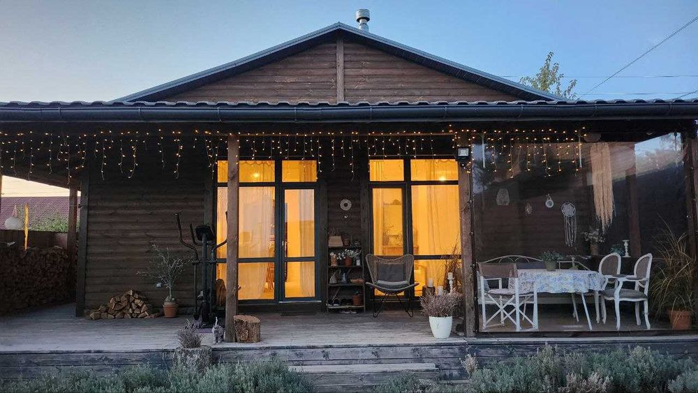 Дом 80 кв.м., новый, Прилиманское, от города Одесса 11 км.; Построен в 2022 году. Основной ремонт закончен в 2023 году. Площадь 80 кв. м. Дом каркасный, толщина бруса 20 см, утеплен мин. ватой, внешняя обшивка дерево имитация бруса, фундамент бетонный ленточный, стяжка, тераса фундамент свайный, внутри дома гипсакартон, отопление конвектор электрический, в доме чугунный камин, есть кондиционер, в ванной пол с подогревом. Гараж, он же мастерская, в нем предусмотрен туалет и душ. Участок 6 соток. Автобус в город ходит каждые 20 минут, конечная Привоз, остановка в ста метрах от дома.