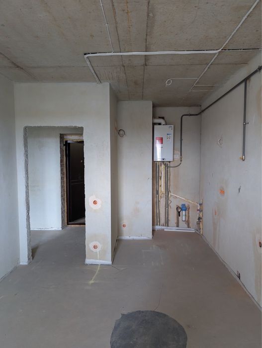 Розведена сантехніка і електрика, зроблене опалення є котел.