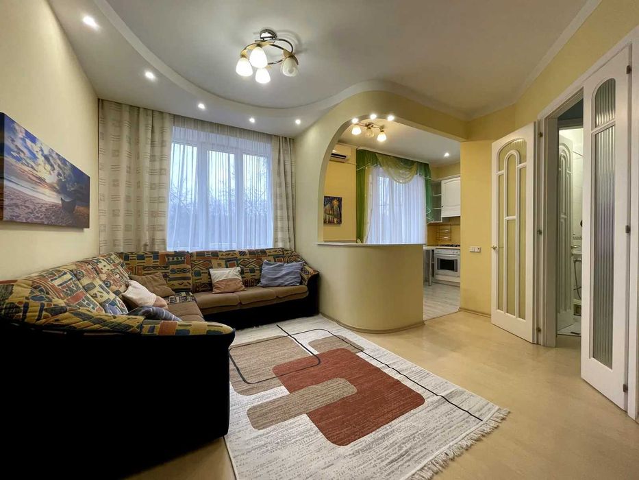 Голосіївський; Сдам в аренду уютную 3 комнатную квартиру по проспекту Голосеевский 88; Квартира расположена на 3 этаже 5-этажного дома без лифта. (Сталинка). Общая площадь 75/31/30. Очень тёплая квартира с ремонтом. В квартире есть вся необходимая мебель и бытовая техника: холодильник, кондиционер, бойлер, сигнализация. Планировка квартиры: отдельно 2 спальные комнаты и кухня гостиная. Рядом парки, магазины, развитая инфраструктура, транспортные развязки. До станции метро Голосеевская 7 мин. рядом с Голосеевским парком.