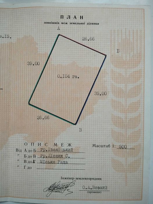 | Земельна ділянка: |