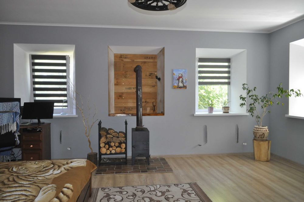 Дом в Матвеевке, в экологически чистом и безопасном месте, после капитального ремонта. Жилая площадь - 60кв.м. Больша спальня (30кв.м.), детская комната, ванная комната, и комната-студия (гостинная/кухня), гардеробная комната, просторная прихожая, второй туалет. Дом оснащен солнечной электростанцией с качественным инвертором на 6кВт. (Осталось подключить оборудование). Новая медная проводка по всему дому. Металопластиковые окна, в одной комнате с зеркальным напылением. Новые полы с гидро- и теплоизоляцией, покрытые ламинатом. В ванной комнате, для бОльшего комфорта - "теплый пол", а в зале - стальная дровяная печь, очень выручала в многочисленные блэкауты, и продолжает создавать уют зимними вечерами и в межсезонье. Новая система отопления. Скважина глубиной 36м. 12ть соток приватизированной земли. Теплица под пленку. Плодовый сад, ягодные кусты, виноград. Цветочные клумбы и рокарии. Большой живой навес из девичьего винограда-создающий уют и прохладу летом. Место для отдыха с кирпичным мангалом. Летняя кухня с газом и водой, которую можно переделать под гостевой домик. Сарай. Красивый деревянный дровник. Котельная с твердотопливным котлом+теплоаккумулятор на 400л., электрокотел. Также есть возможность подключить газовый котел. Бойлер смешанного типа (в отопительный сезон нагревается от системы отопления без затрат эл.энергии). Гараж со смотровой ямой. Большой ступенчатый погреб. Широкая, асфальтированная улица. В доме остается: экономичная индукционная плита со множеством разнообразных функций, кухонная вытяжка, газовая плита, кухонный гарнитур. Остальное по договорённости.