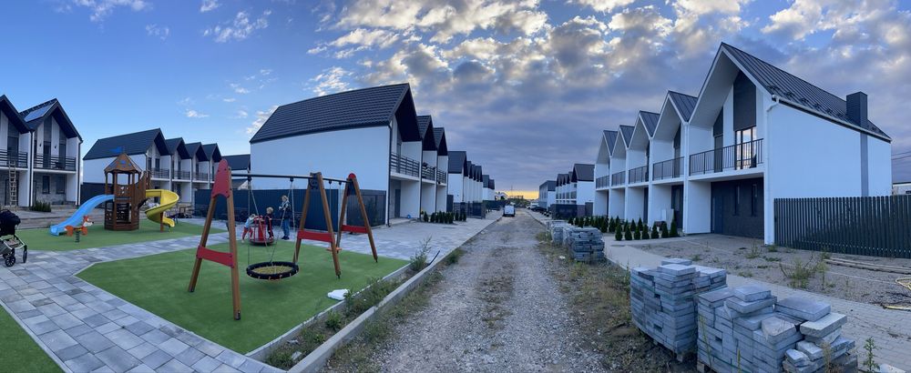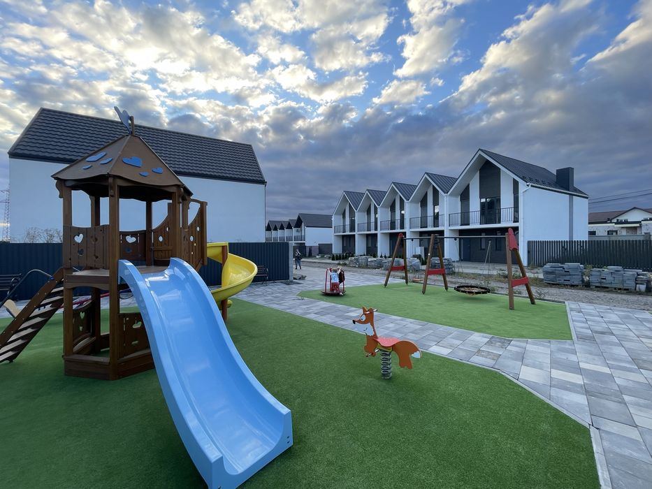 Котеджне містечко закритого типу з дитячою площадкою і з гарним благоустроєм території. Вже живуть люди і бігають діти