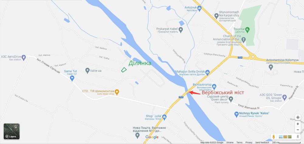 Ділянка розташована на відстані 2 км від автовокзалу м. Коломия.