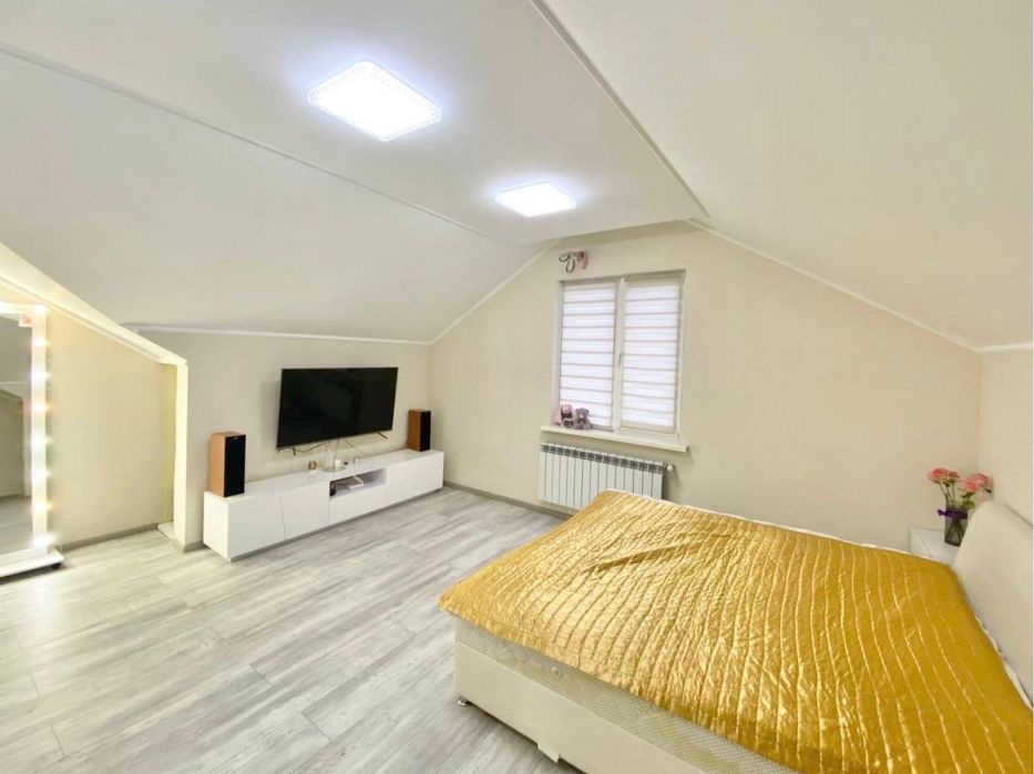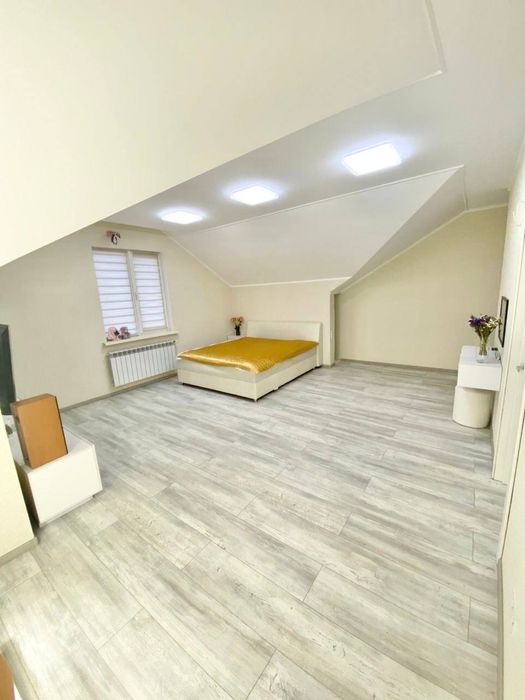 2 - На другому поверсі розташована одна спальна кімната 40 кв. м. з великим сан вузлом (туалет+душова), яку за бажання можна трансформувати в дві кімнати, також присутнє місце для облаштування гардеробу або втілення своїх дизайнерських фантазій, як приємний бонус в кімнаті є дві ніші для зберігання речей, які слугують як комори.