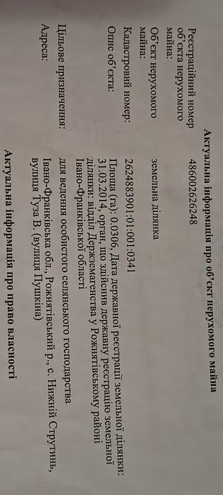 | Земельна ділянка: |