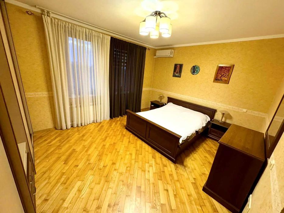 Спальня має містку велику шафу купе з сейфом, є кондиціонер, ортопедичний матрац на ліжку.