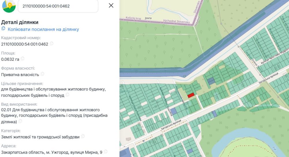 Земельна ділянка під будівництво котеджа; Продається земельна ділянка в м. Ужгород, район вул. Ярослава Мудрого