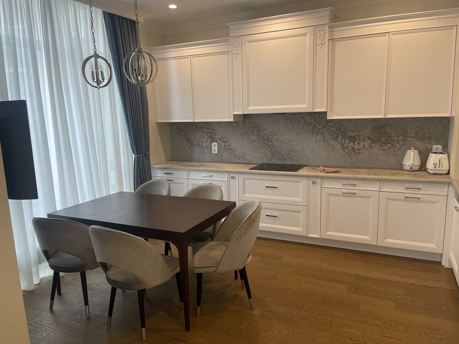 Сучасна вітальня, окрема велика кухня, майстер- спальня з окремою ванною кімнатою та гардеробом, дитяча кімната. Стильні меблі та сучасна побутова техніка.