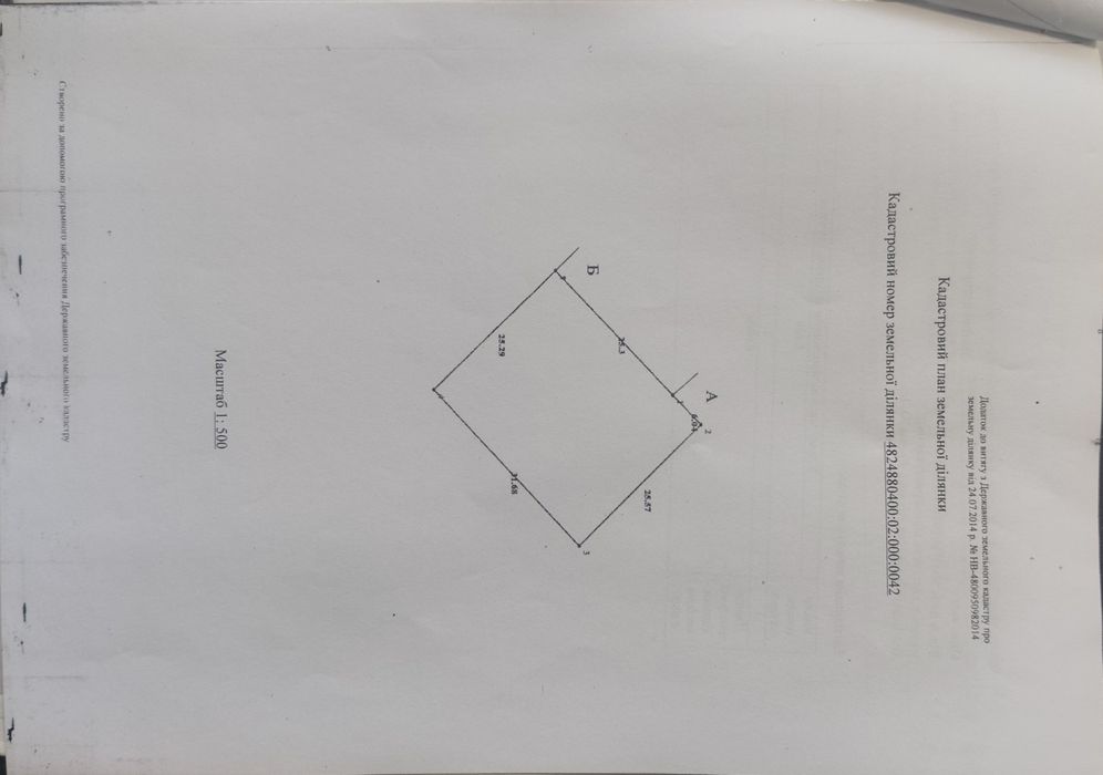 Є кадастровий номер. (Право власності з 2014 року).