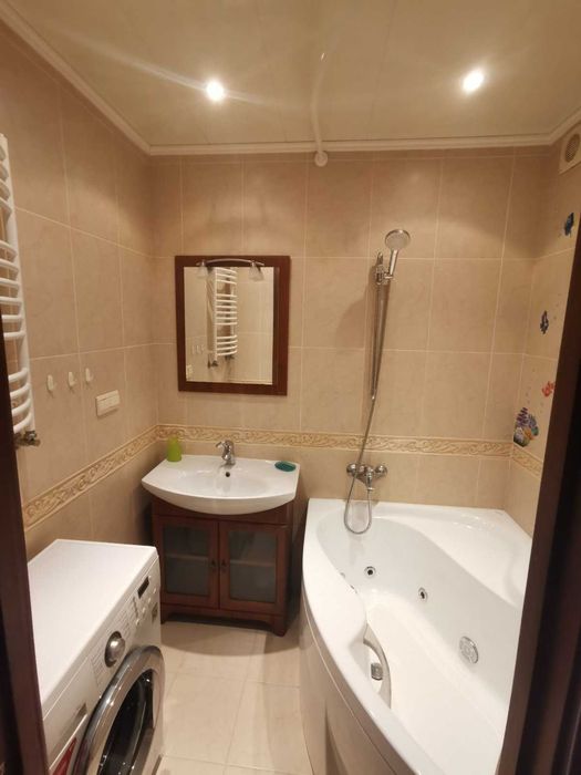 Сан/вузол з підігрівом теплого полу, роздільний. Ванна з вбудованим гідромасажем.