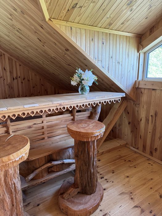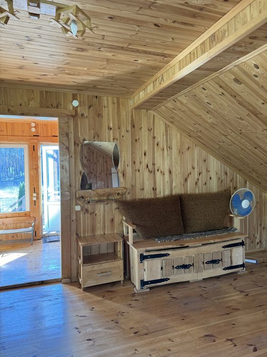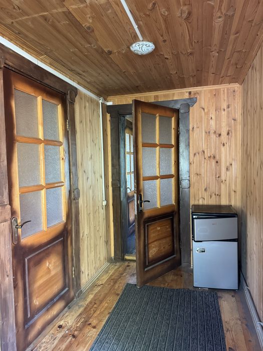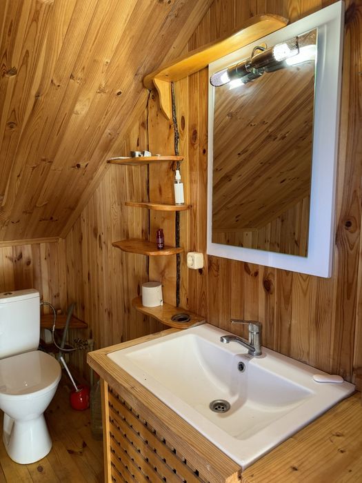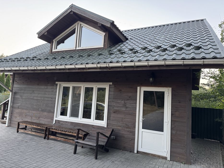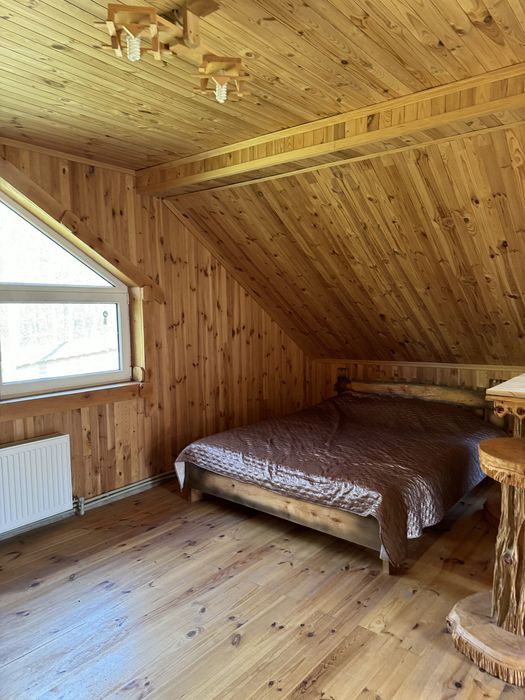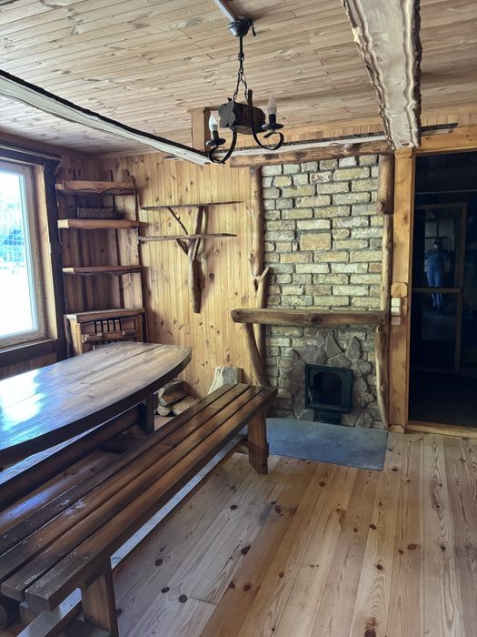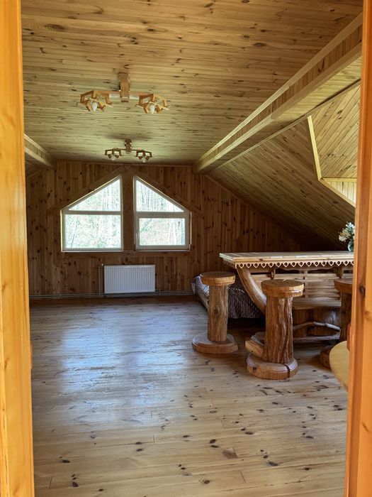 Оренда екобудинку в лісі; Пропоную в оренду на довготривалий термін будиночок, 2 поверхи, 3 кімнати, 4 спальних місця, 3 санвузли. В хаті є груба, якою можна опалювати будиночок у разі відсутності світла, сауна. Твердопаливний котел, бойлер. Можна з тваринами.
