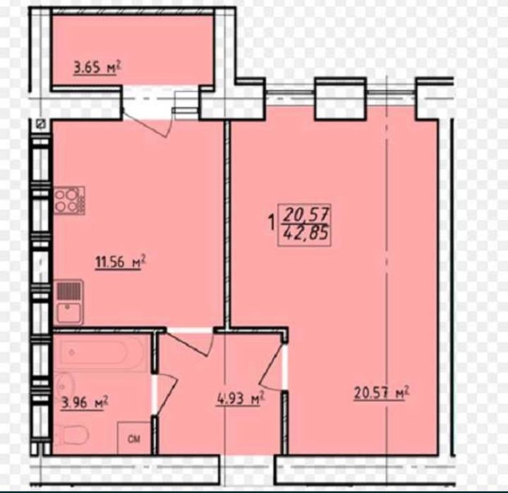 Площа квартири 42.91 кв.м