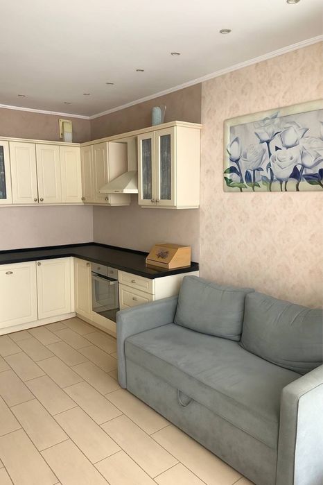 Большая кухня-студия с раскладным диваном.В спальне кровать king-size.Детская на 2-х детей .Санузел раздельный.