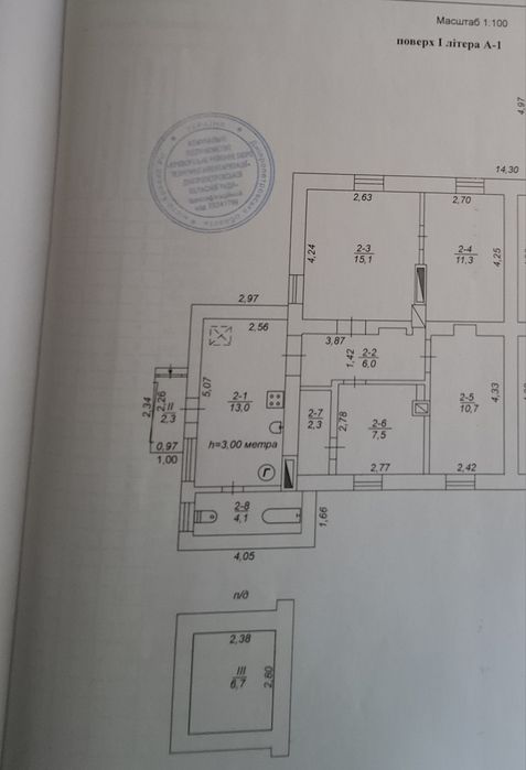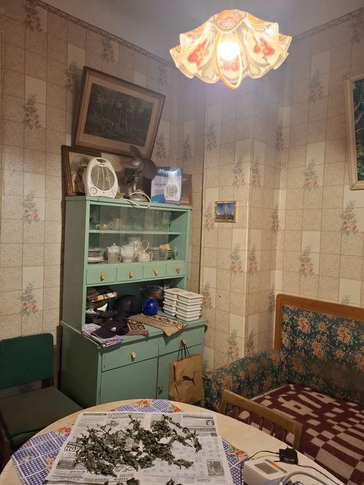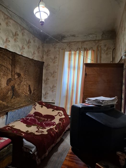 Дві кімнати окремі, одна прохідна. Четверта кімната ( по документам то є кухня-їдальня 7,5 кв.м і не входить в житлову площу) теж окрема, має комору 2,3 кв.м. Велика кухня. Один погріб у будинку, другий надворі.