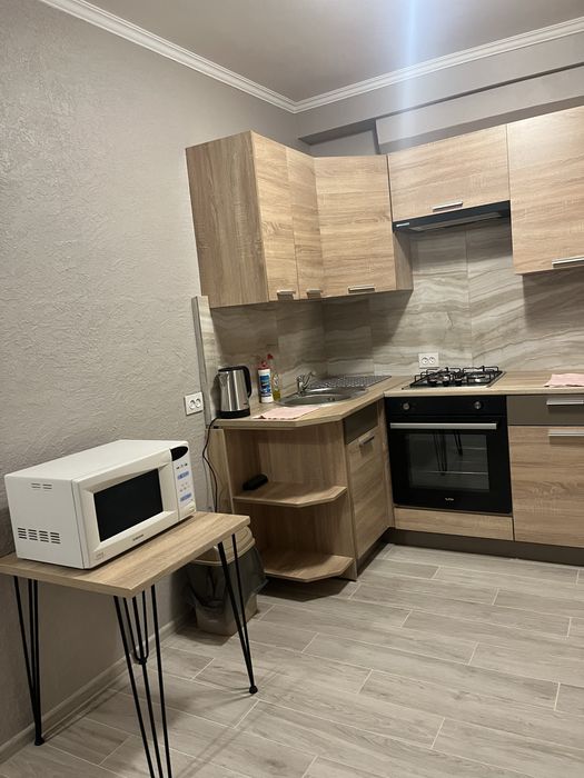 Велика кухня-вітальня, спальня, великий сумісний санвузол, гардеробна. Нові меблі, нова побутова техніка, два кондиціонери, бойлер. В квартирі є газ.