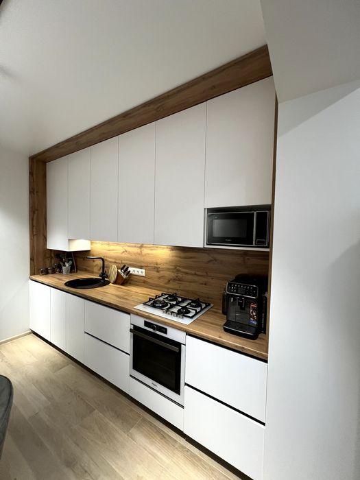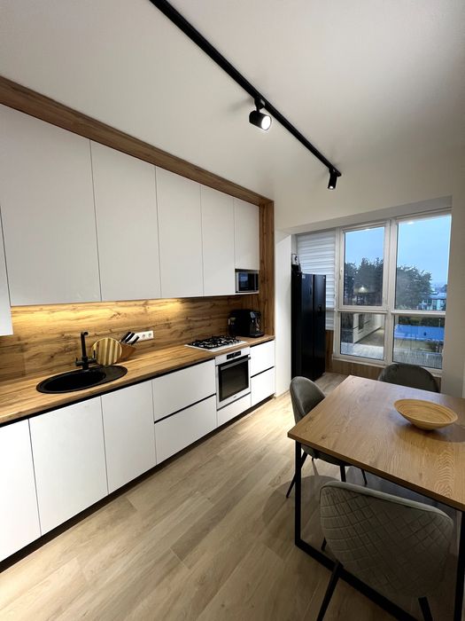 Кухня укомплектована мікрохвильовою піччю, духовою шафою, газовою плитою та витяжкою, посудомийною машиною, великим холодильником, фільтром для води.