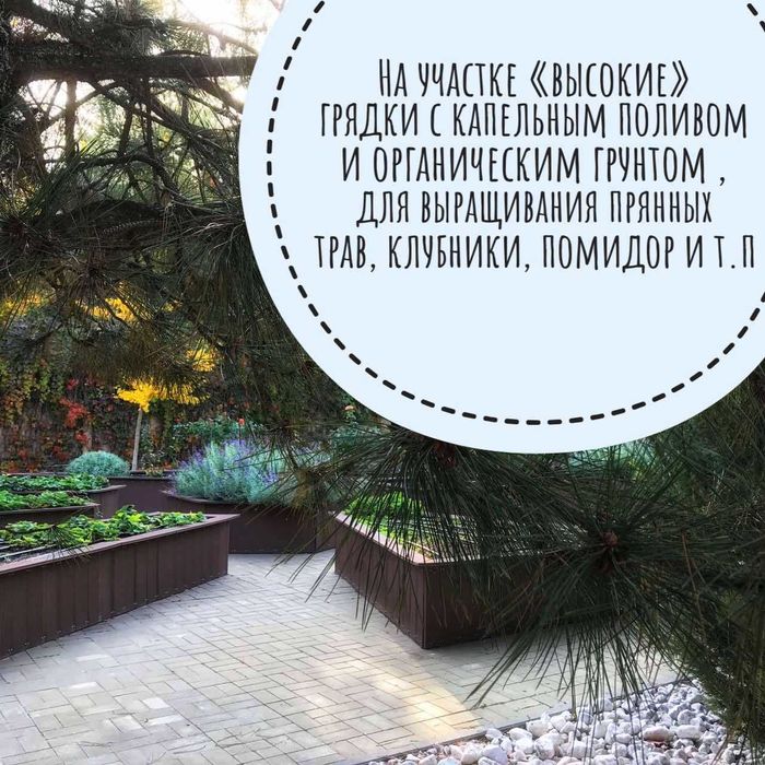 При въезде - парковая зона с взрослыми крымскими соснами, канадскими елями и большим количеством можжевельников с дорожками для прогулок
