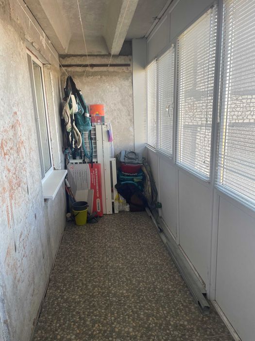 Величезна лоджія – засклена металопластиком, проведена електрика, вирівняна підлога, керамічна плитка.
