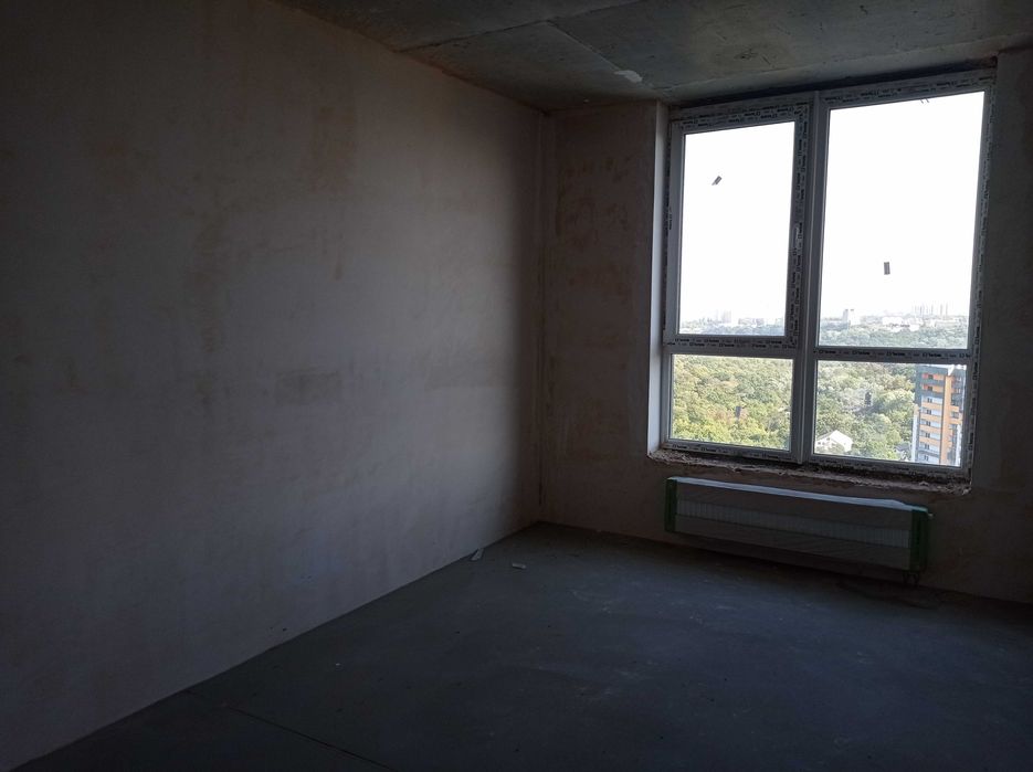 В квартирі виконано лазерну стяжку підлоги, чорнову гіпсову штукатурку стін, встановлено радіатори, металопластикові двокамерні склопакети, протиударні вхідні двері.